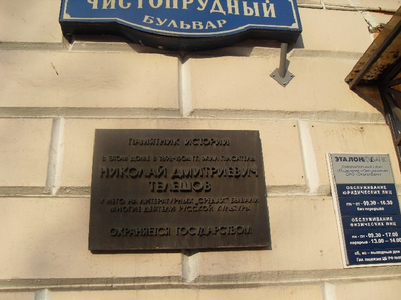 Здесь жили многие известные люди: неподалеку — Грибоедов (памятник ему стоит у метро), поэтесса Ростопчина. Дом № 6 принадлежал Мусиным-Пушкиным, дом № 12 — Пашкову, в доме № 21 проходили знаменитые литературные среды писателя Телешова (их посещали А. Чехов, М. Горький, В. Короленко, Д. Мамин-Сибиряк, Л. Андреев, И. Бунин, А. Куприн). А в доме № 23 жил кинорежиссер Сергей Эйзенштейн.