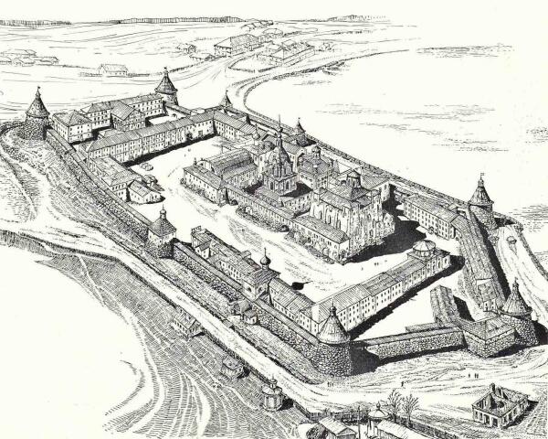 Но вот дорожная пыль смыта, чрево набито, вперёд, други, монастырь ждёт! Издали виднеются шатры да башни крепостных стен — на берегу чистого озера, из которого монахи берут питьевую воду, стоит, как игрушечка, обитель Зосимы и Савватия, упираясь изящно изогнутыми луковками куполов в самые небеса.