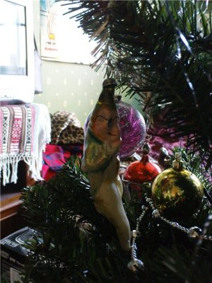 Денис Леонтьев, мы еще просто не отгуляли... Вот моя "елочка" (синий шарик - современный. Часы стоят 23 к., значит выпущены после 1961 года, старых не нашла. Попугая на прищепке не нашла, значит разбит, есть на веревочке. Сова другого формата. Колокольчик - самая любимая игрушка.)