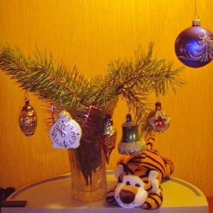 Светлана Усанкова, нет еще, это прошлых лет фото. Нарядим - еще пощелкаю, есть часы, попугай на прищепке. А кукуруза разбита, не вешаем, но храним на чердаке...