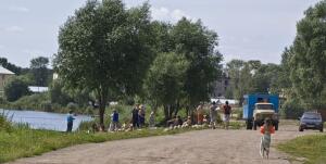 ))) Вообще-то - купаются. Не местные, съехавшие из столицы в провинцию люди расчистили часть берега, вбухали в прибрежные воды несколько машин гравия и песка, обустроили пляж. И выглядит это так.