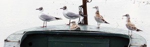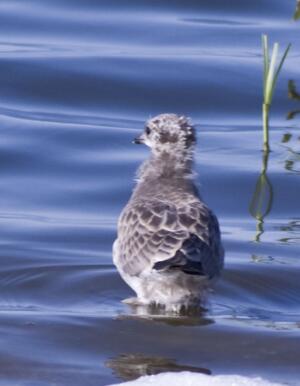 А вот на этом снимке - к сожалению, цель его была - показать плавающую молодую чайку - у нижнего края фотки можно рассмотреть белую пену. Это вода так от прибоя пенится, явно не из-за предельной чистоты своей.