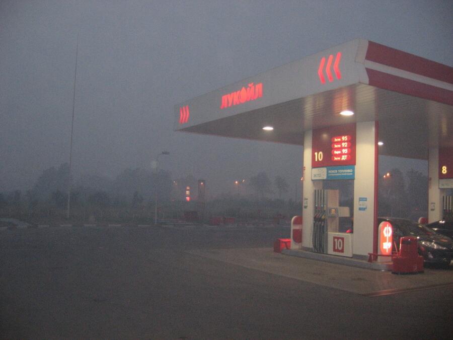 1. Трасса М10 "Россия", 06.08, недоходя до Твери. Задымленность такая, что трассу, которая буквально метрах в 100 от заправки, - почти не видно. Обслуживающий персонал поясняет, что такая ситуация уже второй день. Мол, леса горят под Солнечногорском (Московская обл.). И какие ж это должны быть пожары, что такая задымленность за сотни верст от источника огня и дыма? Где Тверь, а где тот Солнечногорск?