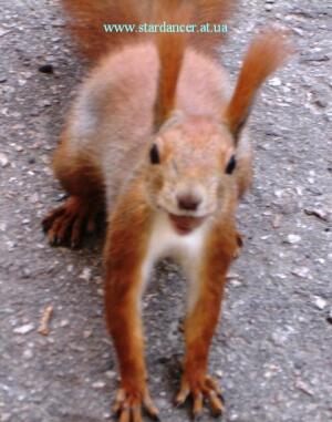 Ворона была злая и сильная, белочке доставалось мало. Она, бедная, начала танцевать вокруг меня на задних лапках, выпрашивая орех. И, куда бы я не двигался, скакала вокруг меня, забавно суча в воздухе передними лапками и полностью забыв об опасности. Она не побрезговала рыночными орешками, ворона, видать, была слишком жадной.
