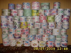 Коллекционировать рулончики туалетной бумаги не сложно. Это хобби не хуже и не лучше многих других; здесь каждый изощряется и эксгибиционирует в меру своей фантазии и возможностей. Конечно, писать письма производителям в другой регион с целью получения в посылке заветного рулончика почти бесперспективно, но даже при небольших дружественных связях в разных городах и весях огромной страны, можно за относительное короткое время получить почти все выпускаемые образцы.