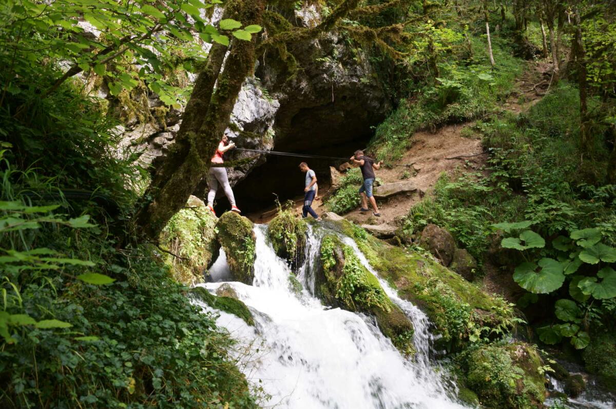 Еще одно место, которое нельзя не посетить в Адыгее, — это водопады реки Руфабго. Череда из семи водопадов самой разнообразной формы и размеров, добраться до последних из них под силу только самым увлеченным, потому что тропа, ведущая к ним, с каждым шагом становится все более каменистой и менее проходимой.