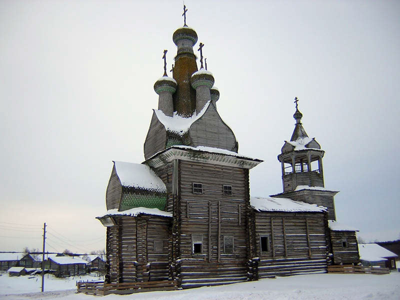 И - тоже, наверное, к юбилею ученого человека - раскатали церковь в Кимже. Хрестоматийную, учебниковскую, федеральный памятник. Раскатали, заново складывать стали - по 12-й венец довели - а дальше, мол, денег нет. Был памятник истории и культуры, стали дрова.
