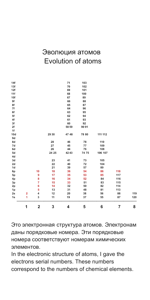 1. В каждом Естественном Цикле атомного мира материи заполняются электронами не менее чем два слоя электронного облака атома.