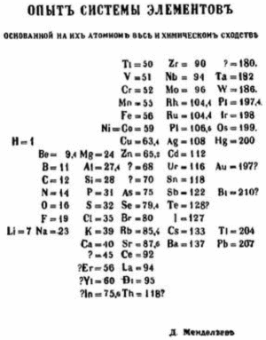 Причем - он в одном или двух местах поменял местами элементы (нагло и бесчестно - чтобы таблица лучше смотрелась). Правда, позднее оказалось, что он все сделал правильно, просто ученые неправильно посчитали атомный вес тех элементов.