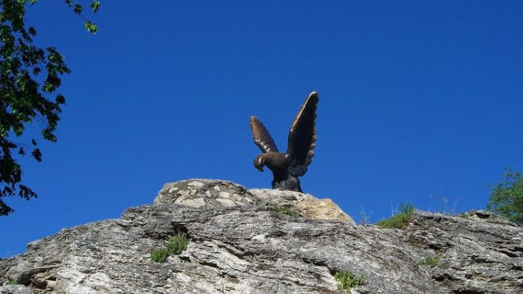 Парк невелик на первый взгляд, но через час непрерывных подъёмов и спусков ноги начинают гудеть. На одном из склонов натыкаюсь на скульптуру Орла, установленную к столетию курорта в 1903 году и ставшую символом города.
