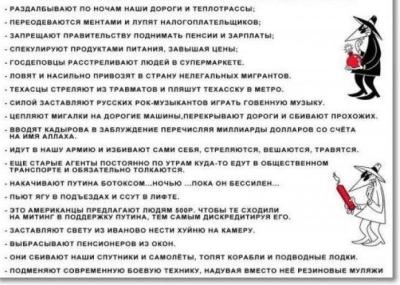 • Люба Мельник, резиновые муляжи боевой техники существуют для того, чтобы обманывать спутниковую и аэрофоторазведку. Насчет падения "Фобос-Грунт" есть серьезное подозрение, что таки виновны американцы. Пенсионеры из окон выбрсываются потому, что как сказал Чубайс "они не вписались в рынок". Казалось бы при чем тут американцы, да? Света из Иванова подражает американским звездам YouTube. Митинги за Путина американцы не проплачивают, зато финансируют митинги против Путина, что вынуждает противоположную сторону к симметричному ответу. Ну и так далее, я по каждому пункту могу ответить. Так или иначе, появление большинства этих и других проблем связано с усилением влияния на Россию со стороны США. Да и в самих США такие же проблемы в наличии... К ГМО это, правда, отношения не имеет.