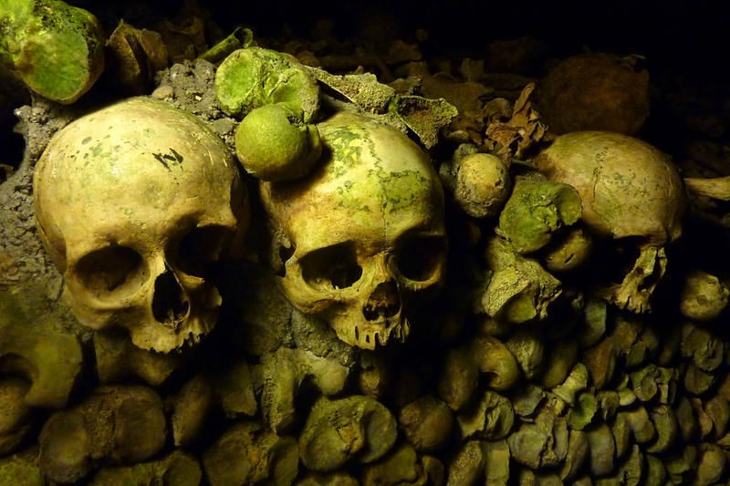 Не меньше ужаса наводят катакомбы под Парижем, которые представляют собой длинные лабиринты коридоров. Во многих местах стены украшают настоящие человеческие кости и черепа, надписи, которые были здесь еще во времена революции во Франции. Катакомбы наводят ужас на туристов своим жутким видом, ведь недаром о них столько писали великие писатели Гюго и Райс. Катакомбы протягиваются под городом любви на 187 километров, хотя туристы имеют право посетить лишь небольшую их часть. Самые впечатлительные посетители твердят о легионах мертвецов, которые со временем превратились в вампиров и зомби. Главной причиной возникновения таких слухов и жутких легенд можно назвать тот факт, что подземные ходы существовали на месте катакомб еще в римские времена.