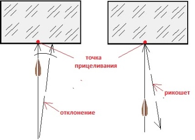 Скорее всего пуля получит рикошет, но не отклонение. Какая сила, какие необычные свойства стекла позволят пуле отклониться от ТП?
