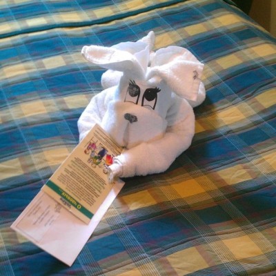 "Если хотите, чтобы ваш номер не просто ежедневно убирали, а ещё и сооружали на вашей кровати всяких там лебедей для красоты – оставьте на столике 1$, когда утром покидаете номер. По возвращении вы будете приятно удивлены."