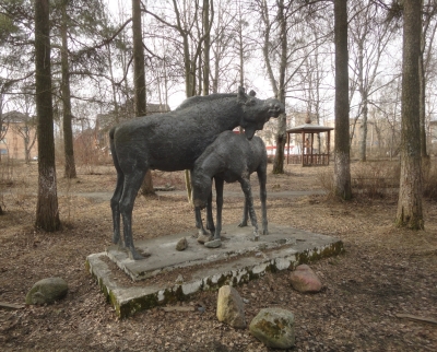 Сегежа, ул. Мира. Скульптура "Лосиха с лосенком" в бывшем Парке Культуры и Отдыха.