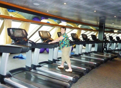 Юрий Лях, теннисного корта я не видела, но большая площадка для волейбола и баскетбола была, там всегда было многолюдно, был мини-гольф, на открытой палубе всякие спортивные приспособления для лазания, подтягивания, а в закрытом помещениеи прекрасный фитнесс клуб, огромный, с массой тренажеров, там пусто было только в первые часы после отплытия, или ближе к ночи, а так - всегда народ занимался. Для спрота там условия прекрасные.На снимке - в первый час после отхода от причала, еще народ не все осмотрел на судне.