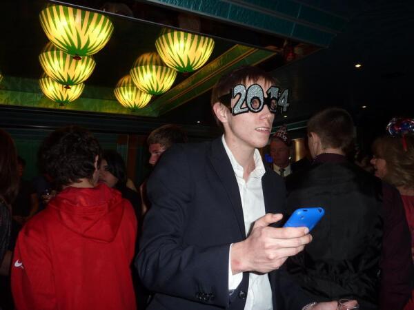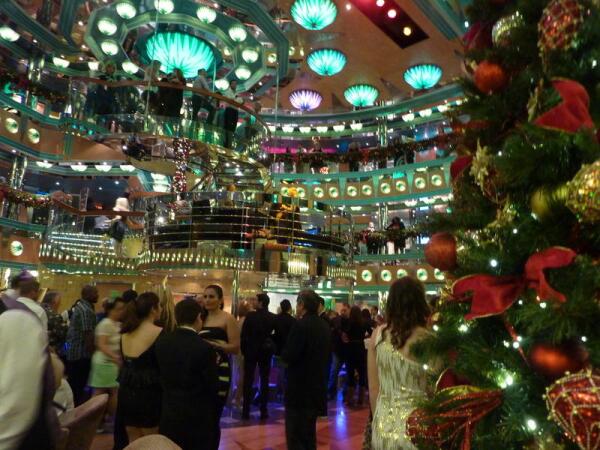 За 15 минут до полуночи официанты стали разносить бокалы с шампанским — новогодний «комплимент» от капитана и его команды. Затем капитан и директор круиза обратились с кратким приветствием, поздравлением. И когда часы пробили полночь, на присутствующих полетели 250 воздушных шариков, которые были заранее приготовлены в подвешенной сетке на 10 этаже. Шарики заменили фейерверк, ибо на корабле нельзя ни зажигать бенгальские огни, ни запускать ракеты и петарды. Публика ликовала, все поздравляли друг друга. Собственно, на этом торжественная встреча 2014 года закончилась. Не было ни Деда Мороза, ни Санта Клауса, ни розыгрышей — все же для американцев главный праздник — Рождество, а не Новый год.