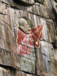Я «прошелся» по Бии на Google map и нашел барельеф, а потом и в Википедии нашел статью «Иконостас (скала)»: «Создателем барельефа является турочакский учитель и комсомольский работник Иван Сычев. По местной легенде, вскоре после Великой Отечественной войны, Иван тяжело заболел и решил оставить о себе память — выбив в примечательной скале на берегу реки барельеф вождей партии. На работу ушло несколько недель и в результате появились изображения Ленина и Сталина. Барельеф последнего был сбит в 1957 году после осуждения его культа личности.