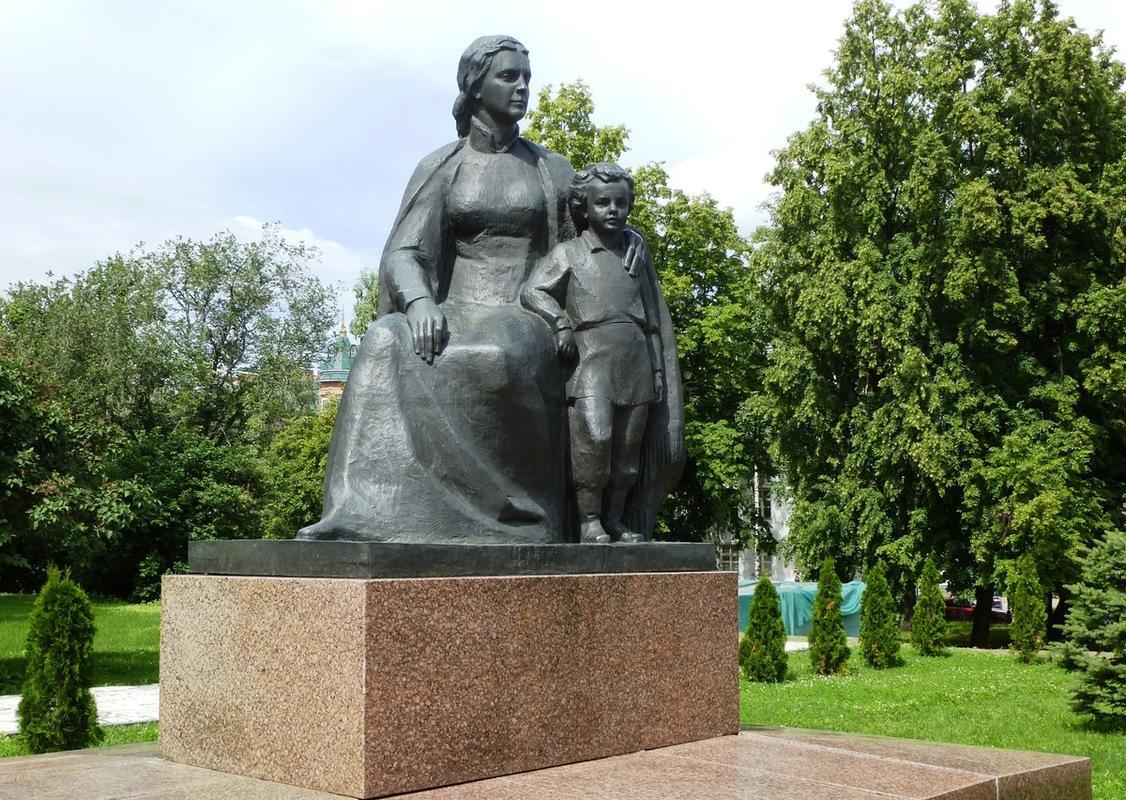 Вот эти три дома и вошли в состав Мемориала. Рядом с последним домом нашлось место для скульптурной двухфигурной бронзовой композиции, установленной на монолитном гранитном пьедестале. Стоящий Володя Ульянов облокотился на бедро сидящей матери. Памятник был торжественно открыт одновременно с Мемориалом.