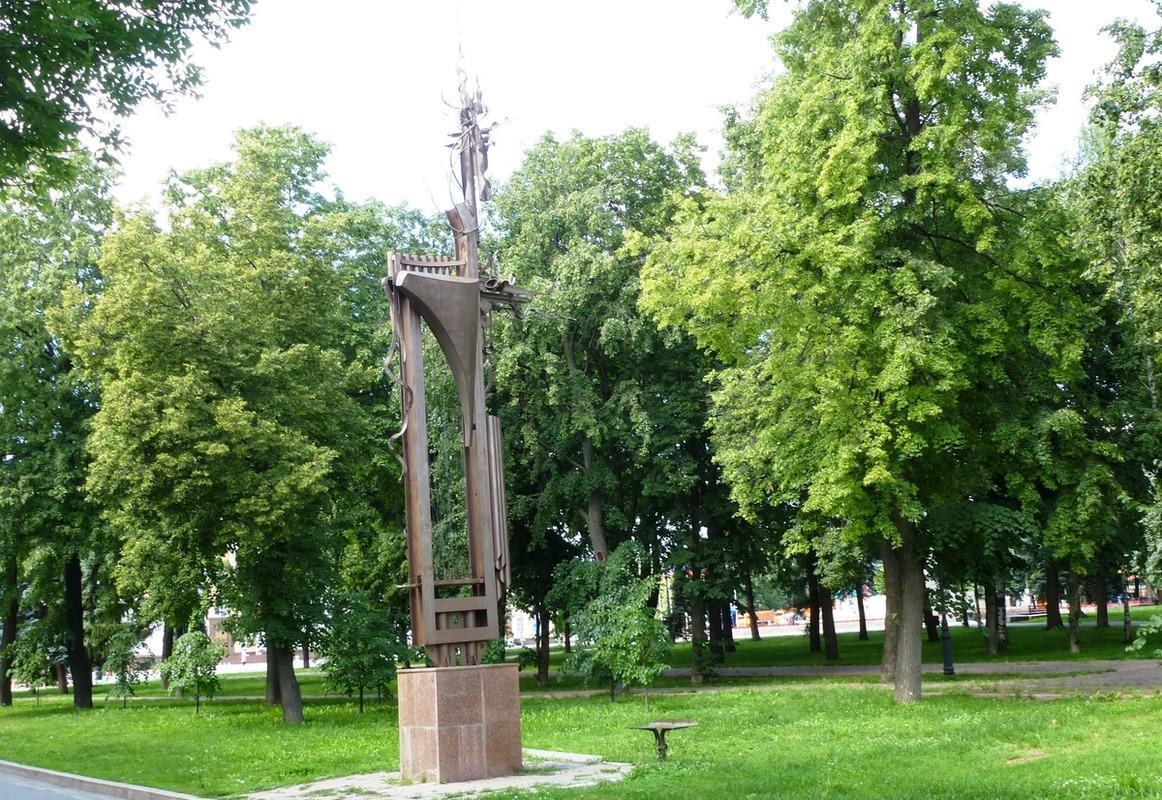 Дальше мы подошли к зданию областной филармонии. Перед ним стояла какая-то непонятная скульптура. Оказалось, что это ветровой орган, то есть музыкальный инструмент, звучащий при порывах ветра. В мире таких было всего два, и вот третий установили в 2006 году в Ульяновске. Произошло это во время фестиваля кузнечного мастерства «Поющий металл». Сооружение получилось весьма внушительным: высота 8 метров, а вес около 2 тонн. Авторы надеялись, что их творение будет издавать при порывах ветра красивые мелодичные звуки, но ничего не получилось. Во-первых, конструкция была немного не доработана, а во-вторых, место там оказалось безветренным. Однако орган продолжает стоять в качестве любопытной скульптуры и оживлять близлежащую центральную площадь.