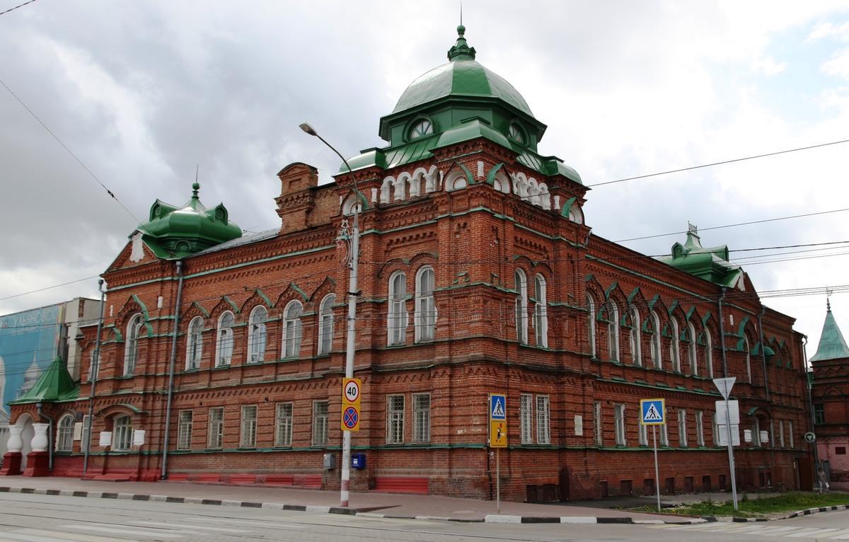 Чуть дальше по Спасской улице, на углу с улицей Дмитрия Ульянова и напротив Ленинского мемориала, где мы неожиданно для себя вновь оказались, находится высокое двухэтажное здание из красного кирпича на высоком цоколе с симпатичными башенками по углам крыши. Когда-то это здание в русском национальном стиле с использованием мотивов и элементов зодчества древней Руси было специально построено в конце 80-х годов XIX века для Симбирской уездной земской управы по проекту — вдумайтесь, пожалуйста! — инженера путей сообщения Алякринского. Насколько многосторонними и великолепно образованными были многие представители русского дворянства! Сейчас даже трудно себе представить, чтобы современный инженер путей сообщения мог спроектировать прекрасное здание, простоявшее уже полтораста лет, и будем надеяться, простоит еще не одно столетие.