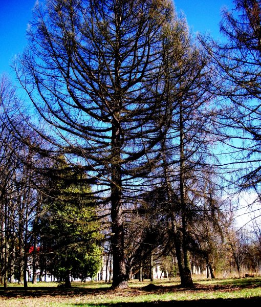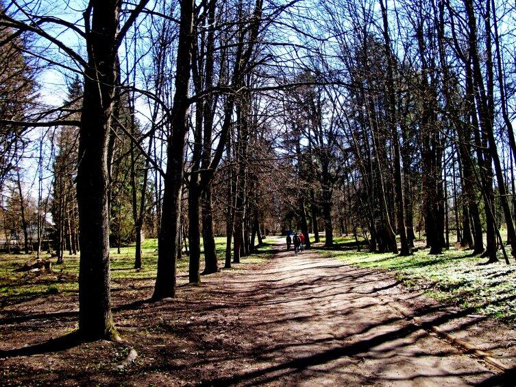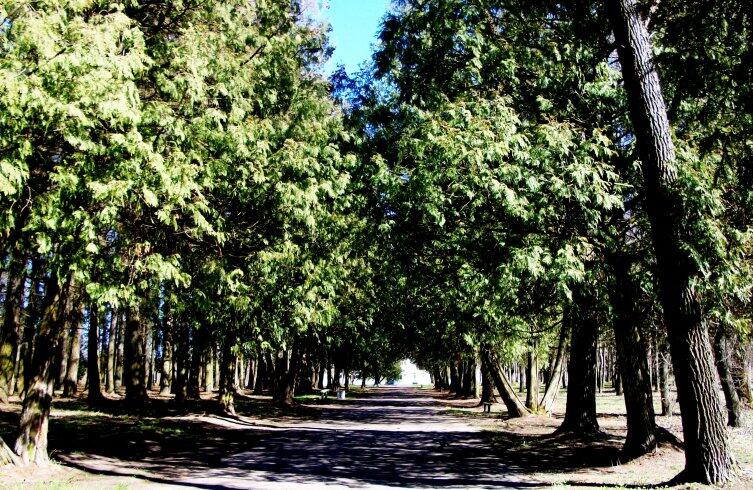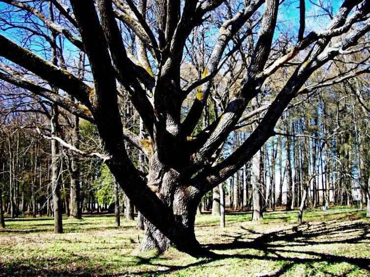 Прогулялась я и по саду, прошлась по аллее из туи, липовой аллее, познакомилась с несколькими редкими вековыми деревьями, что до сих пор украшают парк. Уцелел красавец-дуб, который не смогут обхватить два человека, взявшись за руки. Туристы фотографируются рядом с ним. Его называют дубом любви.