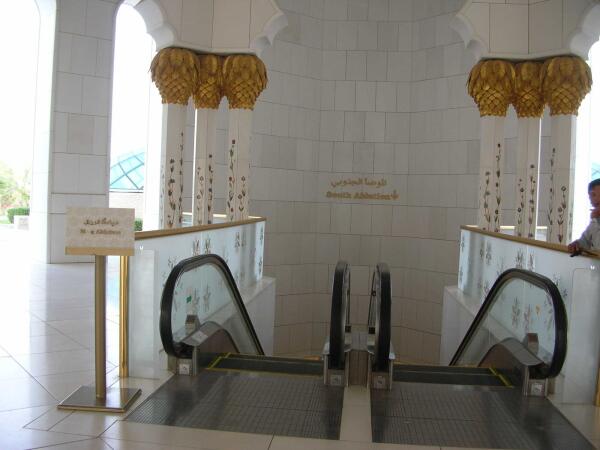 Спасибо Виталий за интересную статью и такое обилие фотографий. Это нужно прочитать всем, кто захочет туда поехать. А туда стоит съездить. Я сам 3 года назад летал в Абу-Даби в командировку, где была и культурная программа. Особенно впечатлила Мечеть шейха Зайда и Президент-отель. Я тоже покажу одну фотографию из Мечети, которая впечатлила больше всего - эскалатор, уходящий вниз - в туалет. Вот чего не ожидал увидеть. А другие эскалаторы доставляют посетителей в огромный подземный паркинг.
