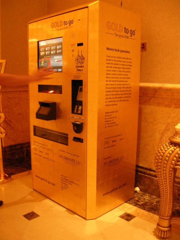 А этот автомат в Президент-отеле продает золотые слитки. Наш гид назвал кое-какие цифры про этот отель: 3 млрд. дол., ушедшие на строительство и 2 тонны золота, которыми отделали все интерьеры. Цифры тогда просто ошеломили. Могут себе позволить роскошь эти шейхи.