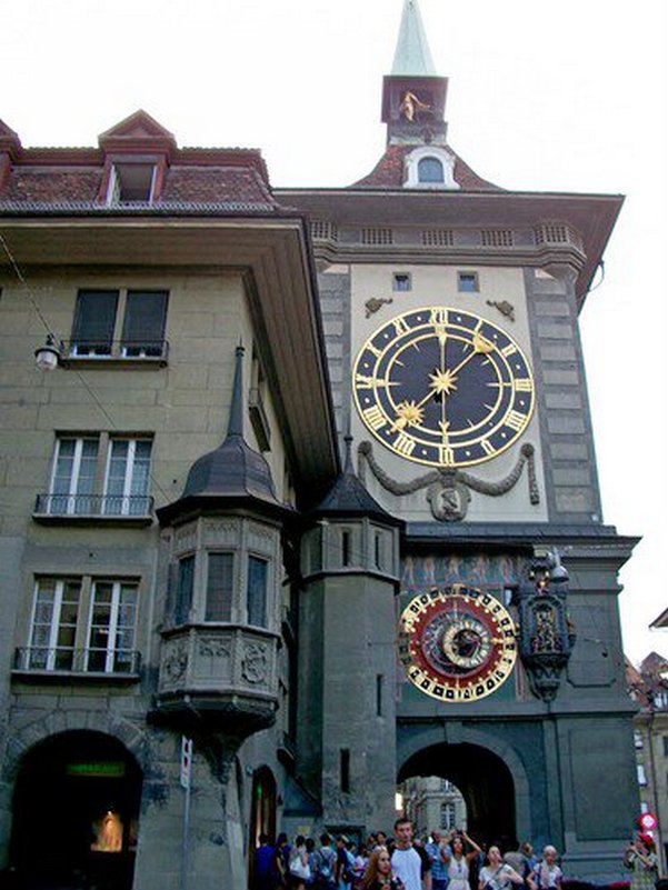 Пожалуй, самое красивое сооружение — башня XII века, восточную часть которой украшают знаменитые астрономические часы работы Карла Бруннера. Они показывают время, день недели, месяц, знак Зодиака и фазы Луны. За четыре минуты до начала очередного часа начинается маленький спектакль механических фигурок, который обязательно нужно увидеть: шут кривляется, пытаясь звонить в колокола, Хронос переворачивает песочные часы, петух кукарекает и машет крыльями, по кругу идёт процессия медведей. Удивительное зрелище!