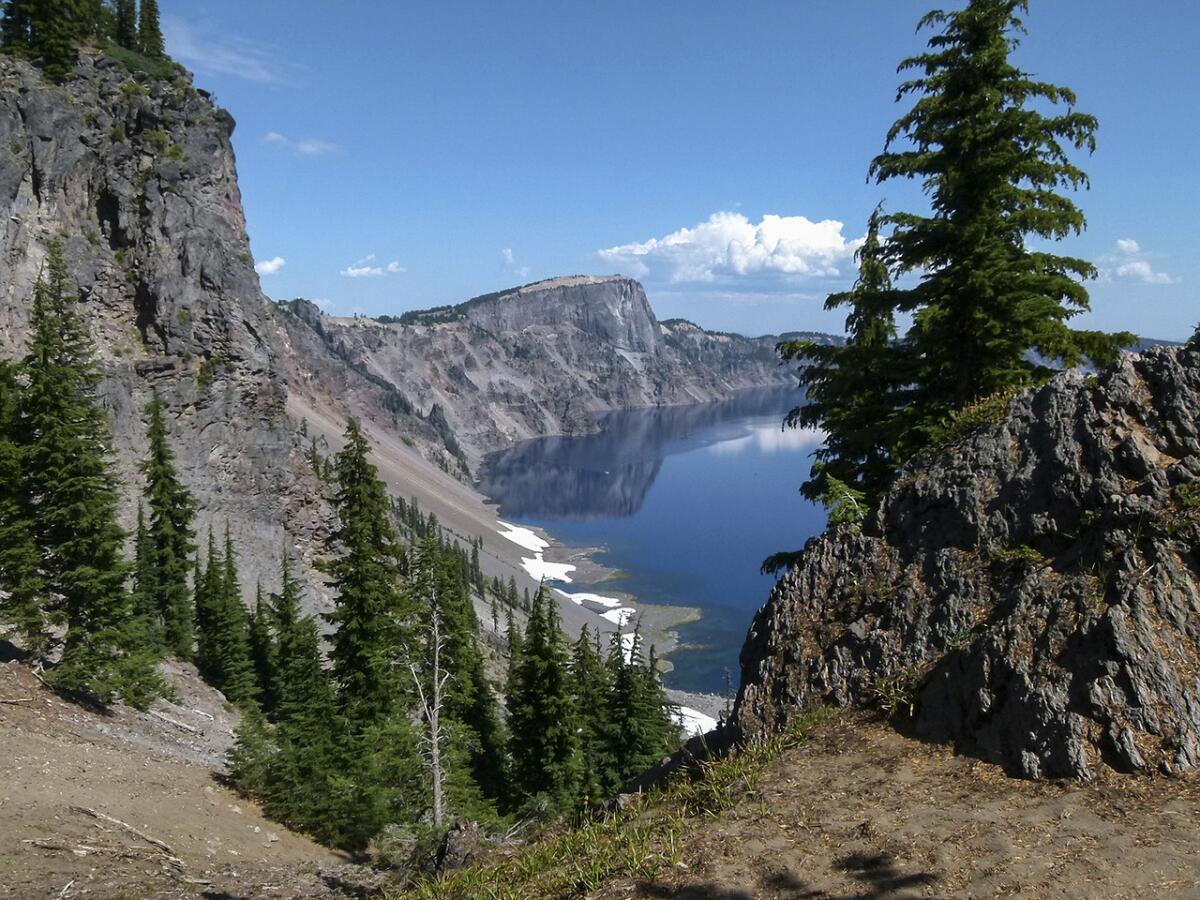 Озеро Крейтер — это вулканическая кальдера глубиной 1,2 км. Образовалась впадина где-то 7−8 тысячелетий назад после разрушения вулкана Мазама. Края кальдеры находятся на высоте более 2 км от земли. Вода в озере здесь очень чистая, а цвет у неё насыщенный синий. На дне водоёма время от времени фиксируются гидротермальная активность, то есть существует вероятность вулканического извержения.