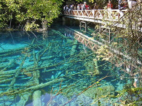 Озеро Пяти цветков в китайском национальном парке Цзючжайгоу меняет цвет воды несколько раз в году. Большую часть времени вода алмазно-синего цвета, но может становиться желтой или темно-зеленой. Феномен озера является загадкой и окружен мистикой, ведь соседние озера высыхают, а Пятицветное озеро сохраняет стабильный уровень воды. Озеро настолько чистое, что при погружении в него можно видеть на 40 метров! На дне озера есть пещера с туннелями, которые соединяются с другими водоёмами долины Цзючжайгоу.
