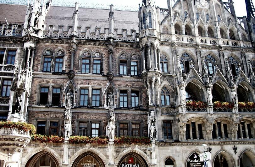 Чудесное представление все досматривали до конца. Да и сама ратуша красива: 85-метровая башня и на ней часы, а также скульптуры католических святых. В башне оборудован лифт, чтобы можно было с высоты полюбоваться столицей Баварии.