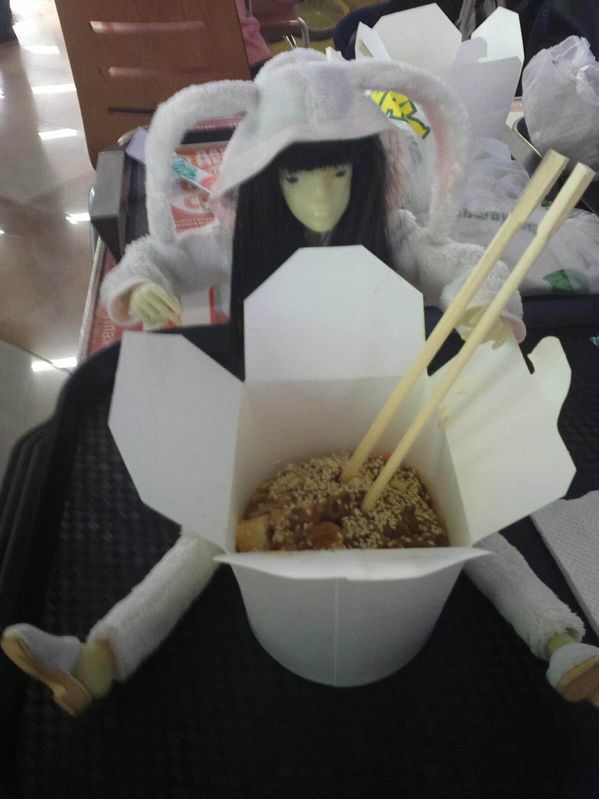 А вот Мукла ест гречневую лапшу. Она тоже появится в моём романе. В смысле Мукла, а не лапша.
