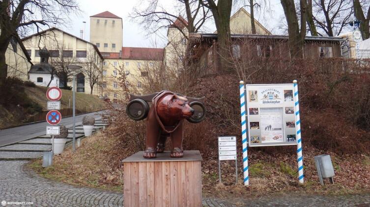 О духовных подвигах этого святого напоминает большая деревянная статуя медведя, навьюченного парой больших пивных бочек. Статуя эта встречает гостей пивоварни прямо у входа. Почему медведь?
