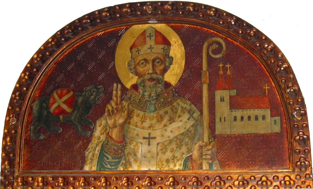 О духовных подвигах этого святого напоминает большая деревянная статуя медведя, навьюченного парой больших пивных бочек. Статуя эта встречает гостей пивоварни прямо у входа. Почему медведь?