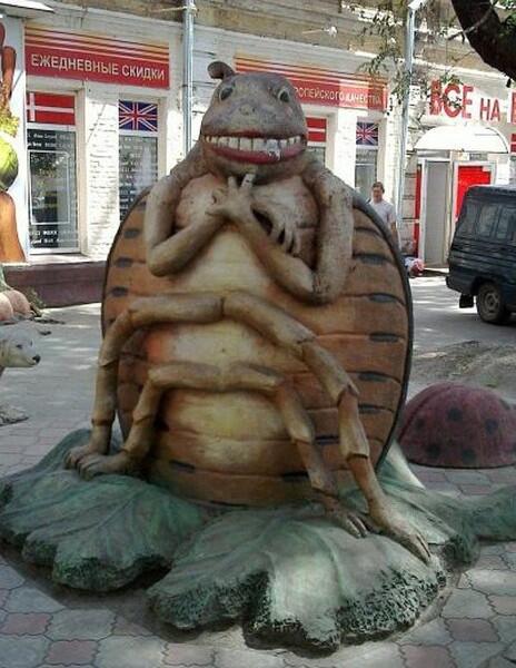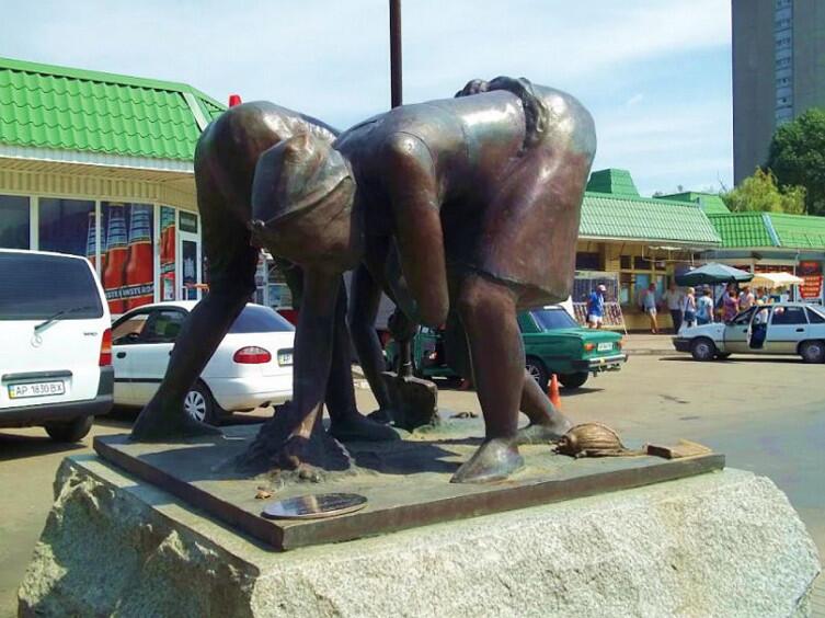 Самый милый памятник установлен в украинском городе Бердянске возле центрального рынка. Скульптурная группа изображает двух дачников, мужчину и женщину, стоящих, как говорится, «в виде буквы зю». В руках у них лопаты, люди трудятся. А где же колорадский жук? Да вот он, рядышком, тащит издевательскую надпись: «Бердянцы, прокормим себя сами!»