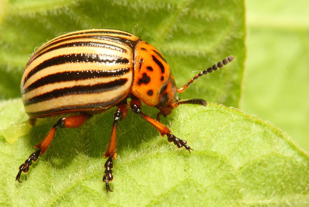 Колорадский жук (Leptinotarsa decemlineata) — это жук-листоед, «специализирующийся» по уничтожению листьев пасленовых растений: картофеля, сладкого перца, томата, баклажана. Как свидетельствует название, впервые этого жука с твердыми надкрыльями оранжевого цвета с черными полосами на них обнаружили в 1824 году в американском штате Колорадо. А первый вред от этих насекомых вредителей был отмечен в 1859 году, когда урожай картофеля на полях штата был фактически ими уничтожен.