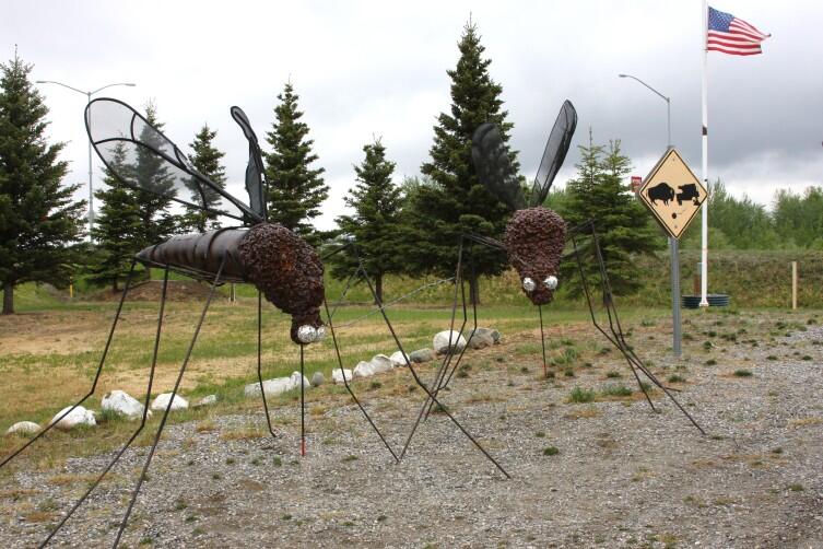 За океаном же, на Аляске, находится еще один памятник северным комарам, как любят шутить местные жители — символической птице этого штата. Намек понятен — комарье здесь крупное и комарья здесь летом много. Памятник аляскинскому комару расположен неподалеку от перекрестка Дельта, где заканчивается знаменитое Аляскинское шоссе (Alaskan Highway). Самый северный штат Америки не богат на монументы. Вот почему железный этот комар стал местной достопримечательностью.