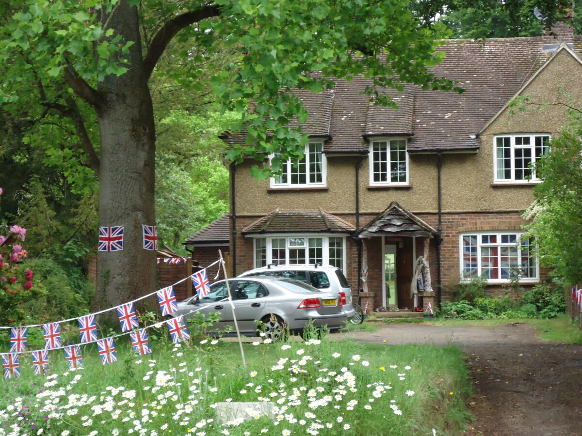 Я гостила в деревне Shere (Шир), образно говоря, в двух шагах от Лондона, но мы так и не смогли насладиться праздником по-настоящему. Во всех больших и малых городах и селах Англии на деньги муниципалитетов прямо на улицах и площадях были накрыты длинные столы с разнообразными блюдами и напитками, всем жителям хотелось выпить за здравие Ее Величества.