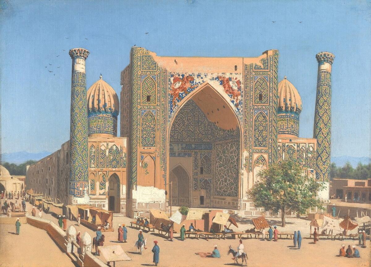 Русская просвещённая публика впервые узнала о Самарканде на выставках художника Василия Верещагина в 1874 году. А русские солдаты узнали чуть раньше, когда им пришлось его завоёвывать. Верещагин, кстати, был среди них и даже участвовал в боях за Самарканд, за что был награждён Георгиевским крестом.