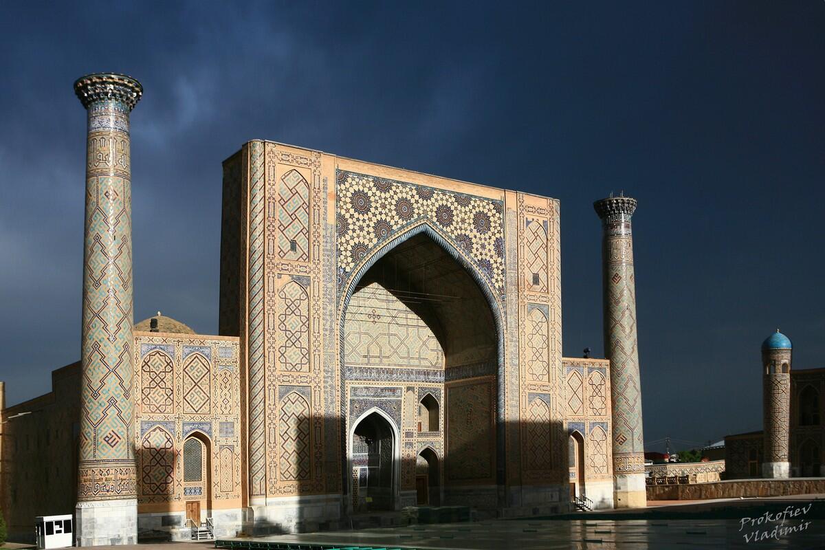 Центральная площадь Самарканда. В переводе слово «регистан» означает всего лишь «место, где песок». Так называли центральные площади во многих городах, но только самаркандский Регистан получил всемирную известность и стал символом Самарканда. Конечно, благодаря сооружениям, которые со временем составили замечательный ансамбль.