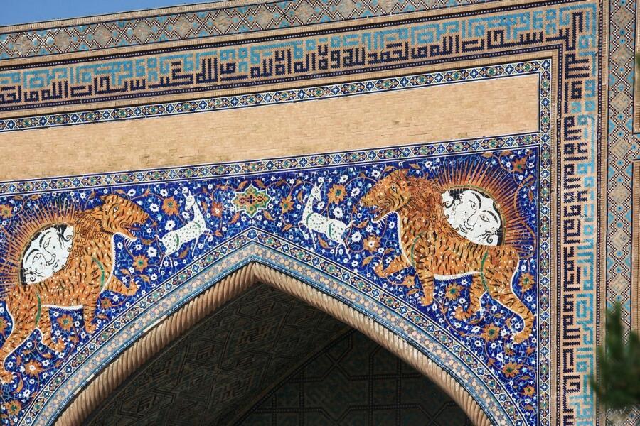 К сожалению, так и остался без ответа вопрос: Как получилось, что и в Бухаре, и а Самарканде на портале зданий конкретно религиозного культа изображены животные и человеческие лица (смотри на фото Шер-Дора). Ранее автор утверждал, что ислам запрещает это.