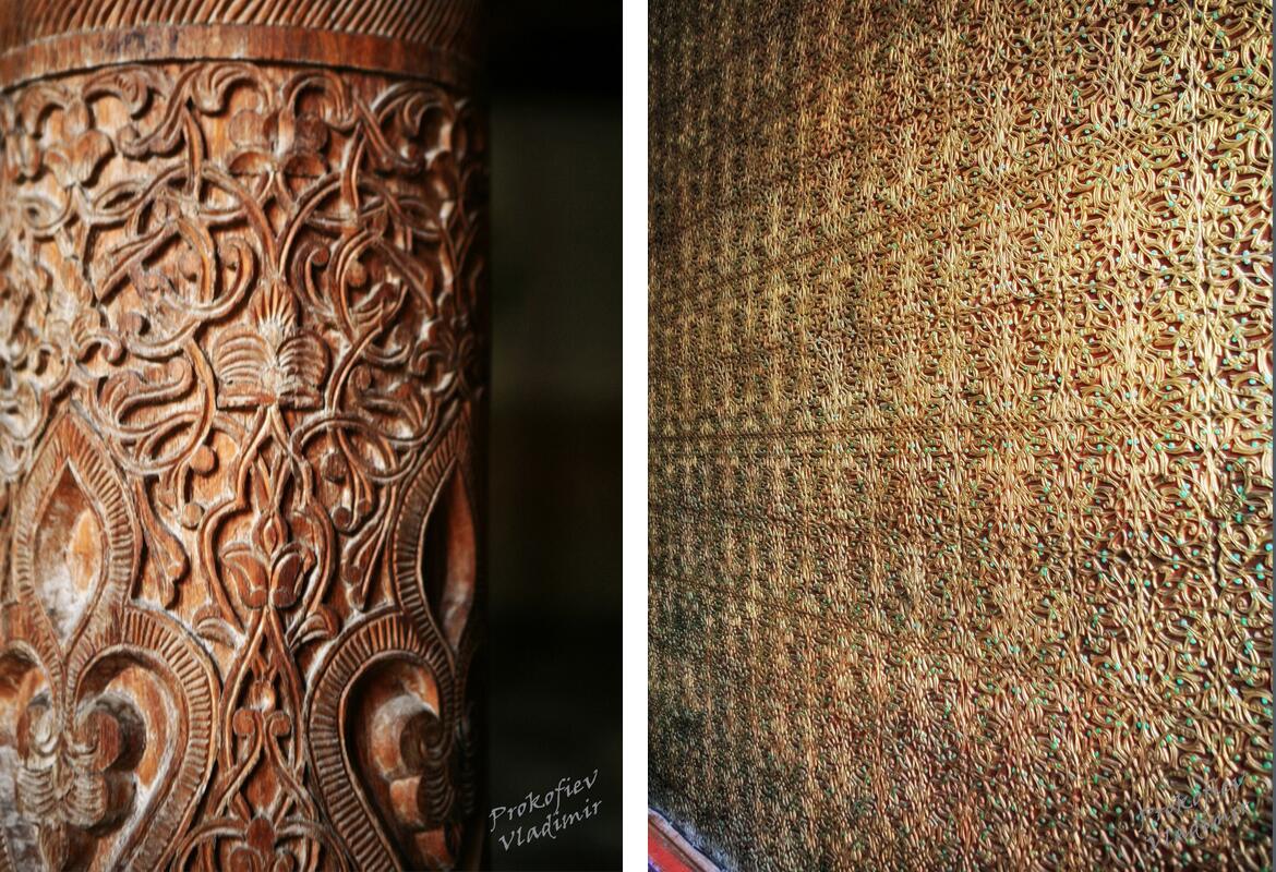 И вот этот самый орнамент в искусстве Азии заявляет о себе и при резьбе на дереве, и в ковроделии, и в резьбе по камню, и в росписи потолков и тканей, одним словом — везде.