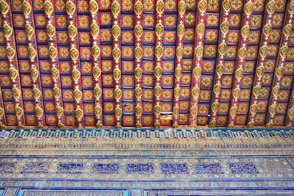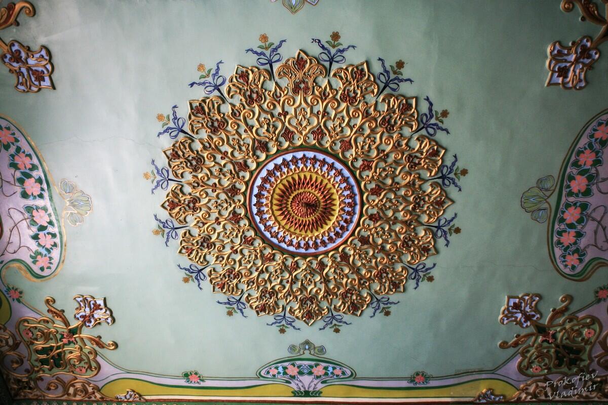 Чисто архитектурный декор мы уже видели на фасадах медресе и минаретов, поэтому здесь я покажу в основном интерьерный орнамент.