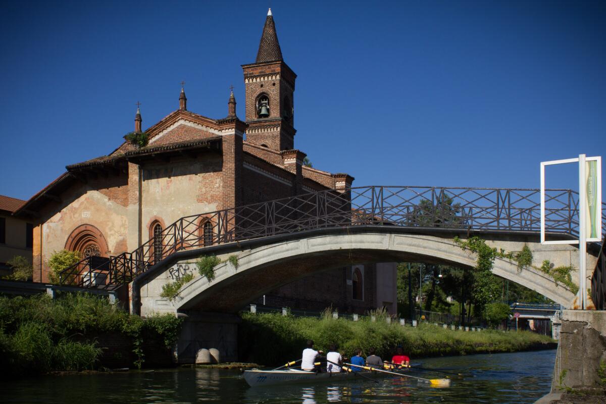 Не то произошло в Навильях. Район почистили и отремонтировали. Кое-какие каналы, превратившиеся в сточные канавы, засыпали. В результате этих работ в районе осталось два канала: большой, Навильо Гранде, и Павийский, Навильо Павезе. Два этих канала соединяет озеро Дарсена. Когда-то здесь были доки, а теперь просто водное пространство. Причем не только для обзора. В Навильях находятся несколько гребных клубов. Так что миланские каналы — совсем не музейные.