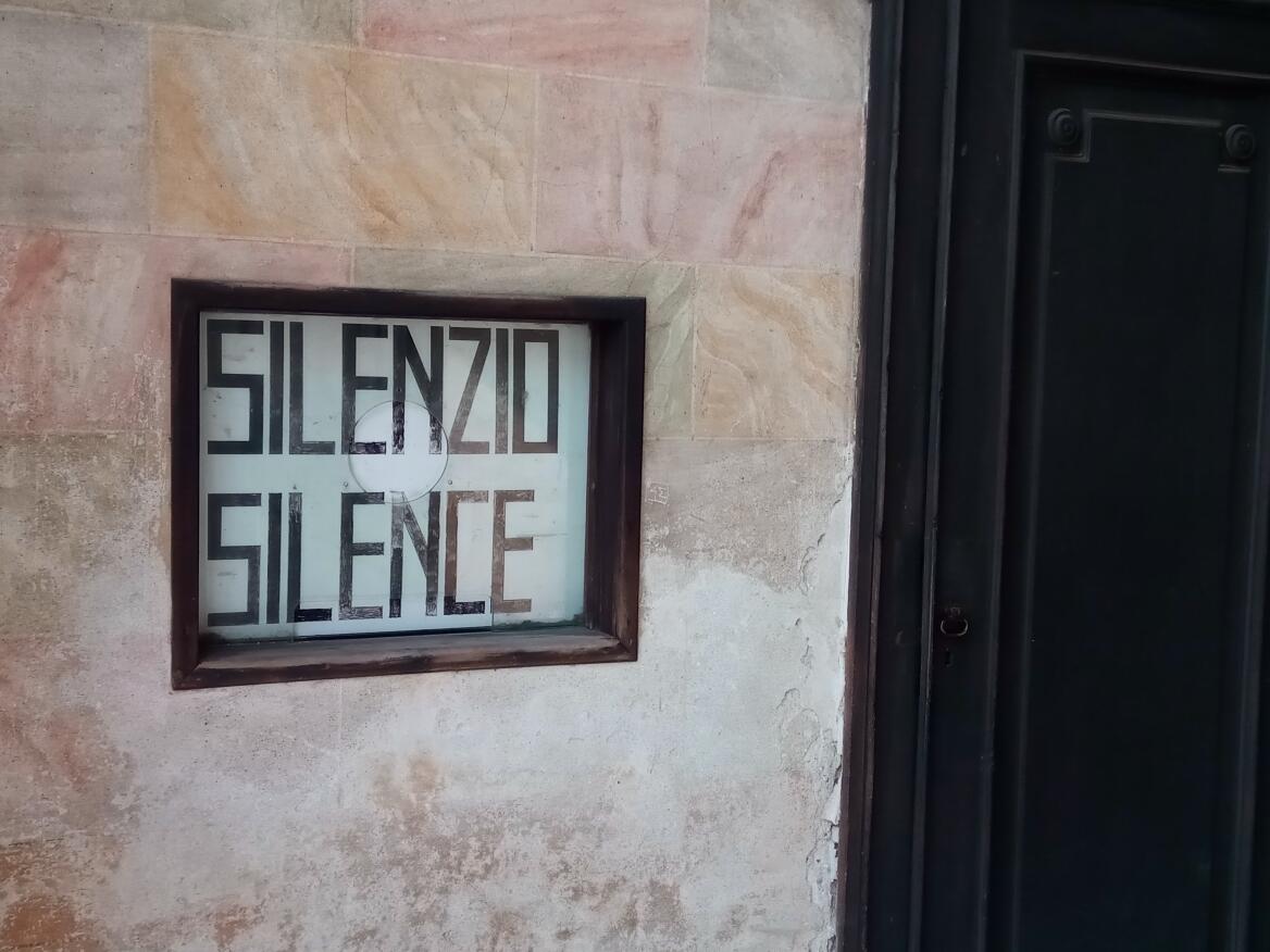 У ворот какая-то мелочная торговля. Но нас земное не волнует. Мы проходим в ворота, мимо плакатика, провозглашающего главную ценность в этом интересном месте, тишину. Silenzio!
