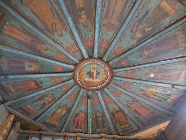 Самое обидное, что такого неба, как в Успенской церкви, я больше нигде не видел. Хотя, справочники утверждают, что на территории России, помимо кондопожской церкви Успения Пресвятой Богородицы, "небеса" сохранились ещё в 31 шатровом храме. Но, мне кажется, эта цифра от лукавого. Потому как по тем же многоглавым храмам утверждается, что небо сохранилось в 6 церквах. И в это количество входит кижская Преображенская церковь (1714 г.). А кто видел Преображенское небо после того, как после заключения перемирия, осенью 1944 г. финская сторона по описи передала советской стороне иконостас и небо Преображенской церкви, что были вывезены в Финляндию в период оккупации этой территории (1941-44 гг.)?! Может, оно (небо) и есть. Мы то расписались, что приняли его от финнов. Но ГДЕ оно? Куда делось по пути из Финляндию в Союз? Кто это знает?! Тайна примерно такая же, как и по Янтарной комнате. Но если последняя, более-менее, - на слуху, то о небе Преображенской церкви...
