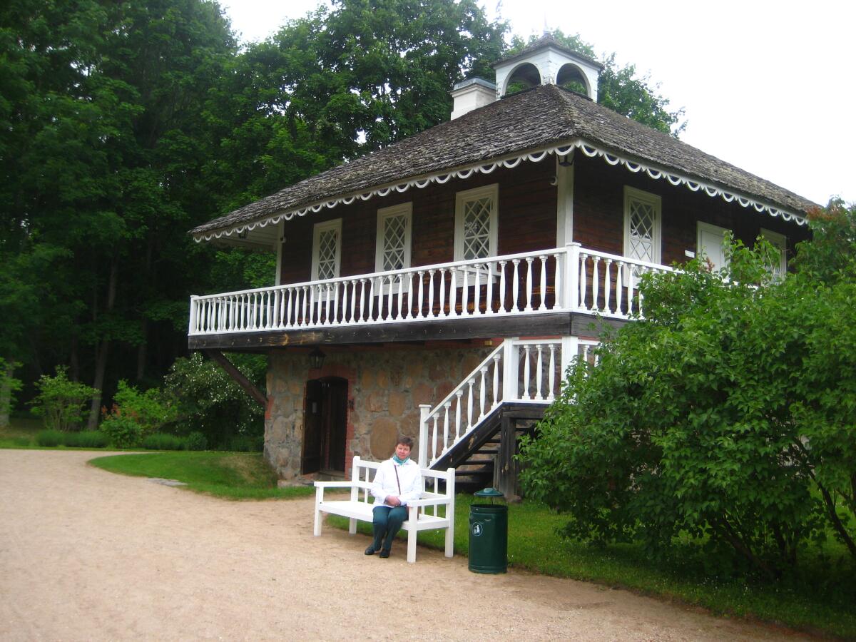 Впереди нас ждал третий, последний, день пребывания в Пушкинских Горах. Утром встали, позавтракали (завтрак на турбазе ну очень хорош, из нескольких блюд, не уступает обеду) и поехали в Тригорское — соседнее имение с Михайловским, куда почти каждый день ходил Александр Сергеевич к своим друзьям. На примере которого писались сельские главы Евгения Онегина и где проживали прототипы главных героев: Татьяны, Ольги, Онегина и Ленского.
