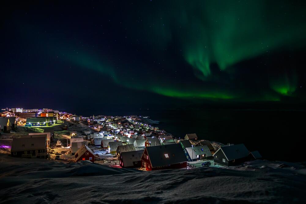 Зато в Гренландии можно наблюдать «Полуночное солнце». Летом к северу или югу от полярного круга Солнце светит 24 часа подряд, стирая грань между ночью и днем. Например, в городе Илулисса можно наблюдать более двух месяцев полуночного солнца. А в Каанааке Солнце не заходит три с половиной месяца подряд.