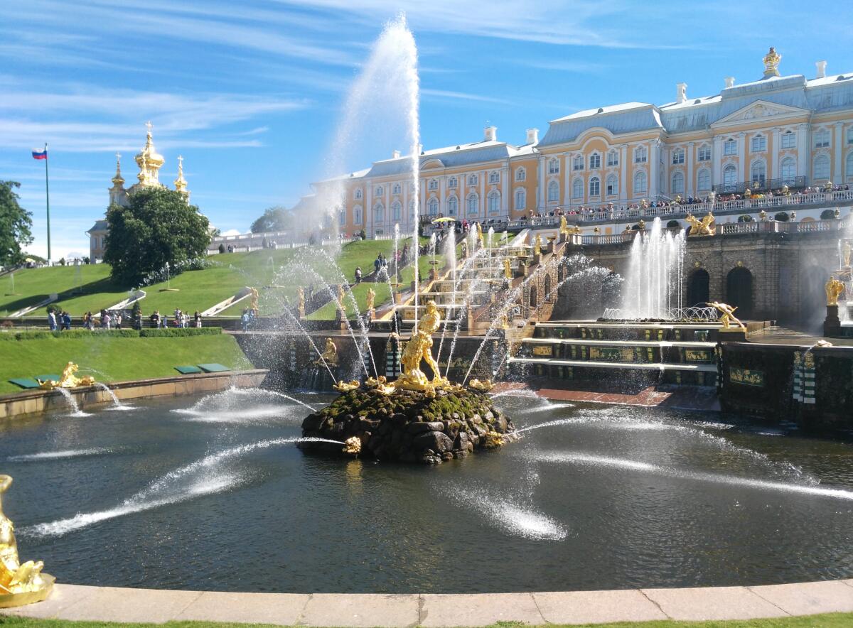 Петергоф же был построен еще во времена Петра I — как копия Версальского дворца под Парижем. В данном случае копия оказалась лучше оригинала. Хотя бы благодаря тому, что в окрестностях Петергофа имеются источники воды, расположенные на возвышенностях. Отсюда в многочисленные фонтаны дворцового парка подается вода. Таким образом, у роскошного дворца в Петергофе имеется не менее роскошное дополнительное украшение — фонтаны.